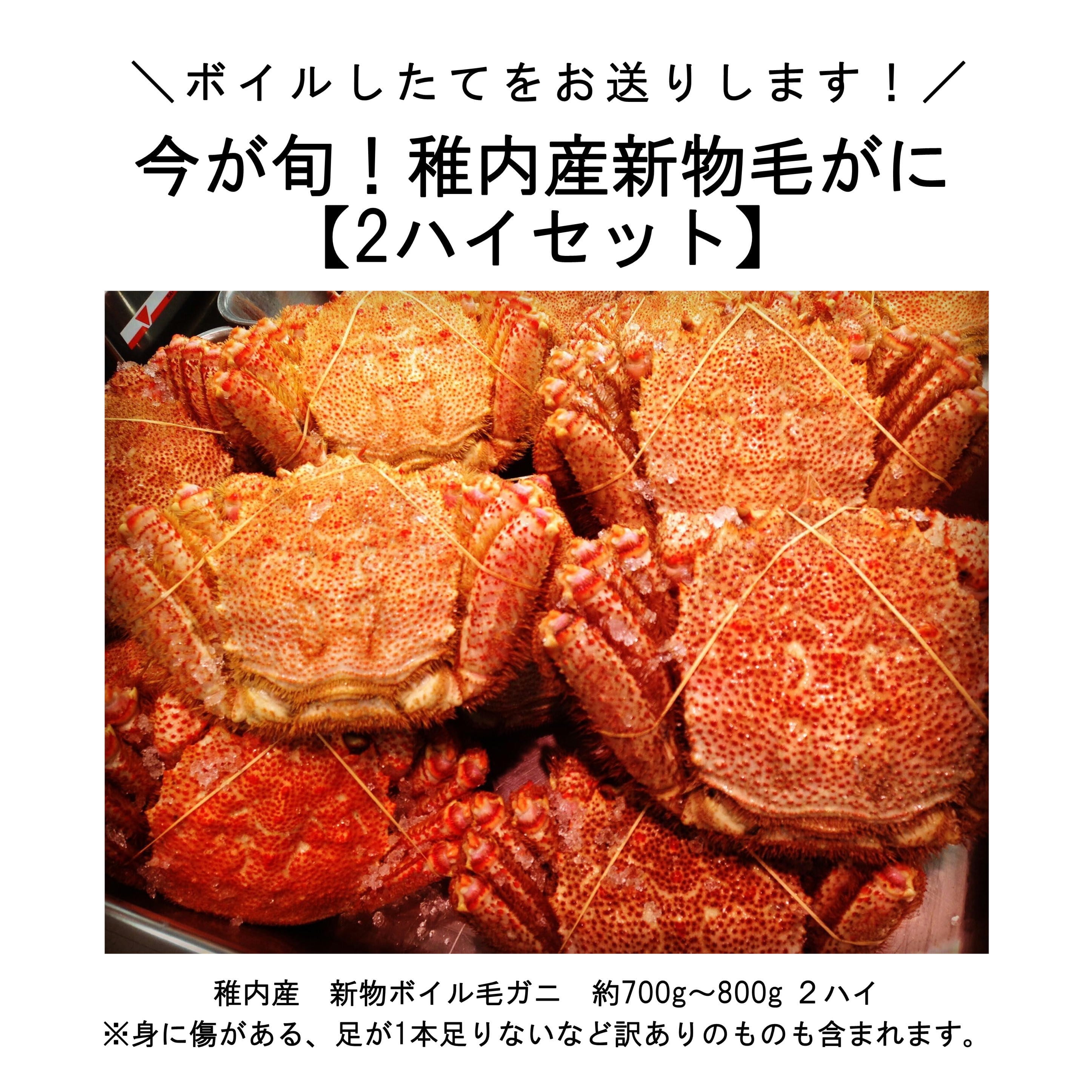 〇稚内産 新物ボイル毛ガニ 約700g~800kg 2ハイ